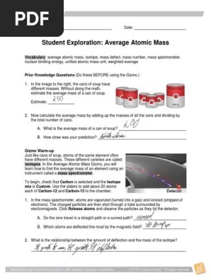 In the average atomic mass gizmo, you will learn how to find the average mass of an element using an instrument . This site uses cookies to improve your experience. The average mass of the four atoms using the traditional method is 12, which is the same as the weighted average found in the gizmo. Average atomic mass gizmo answers. We'll assume you're ok with this, but you can opt out if you like.